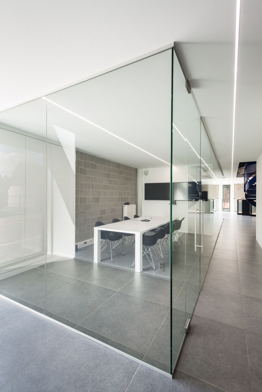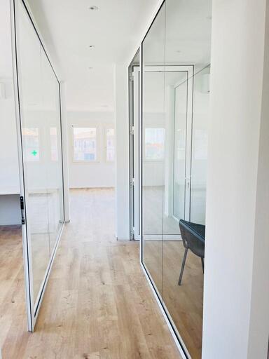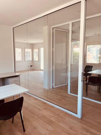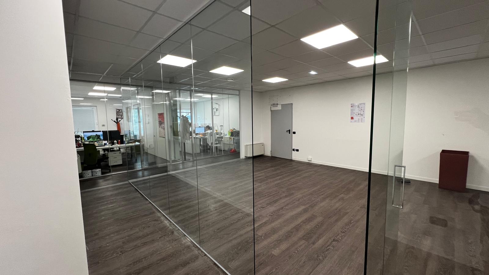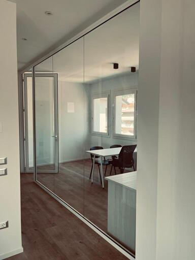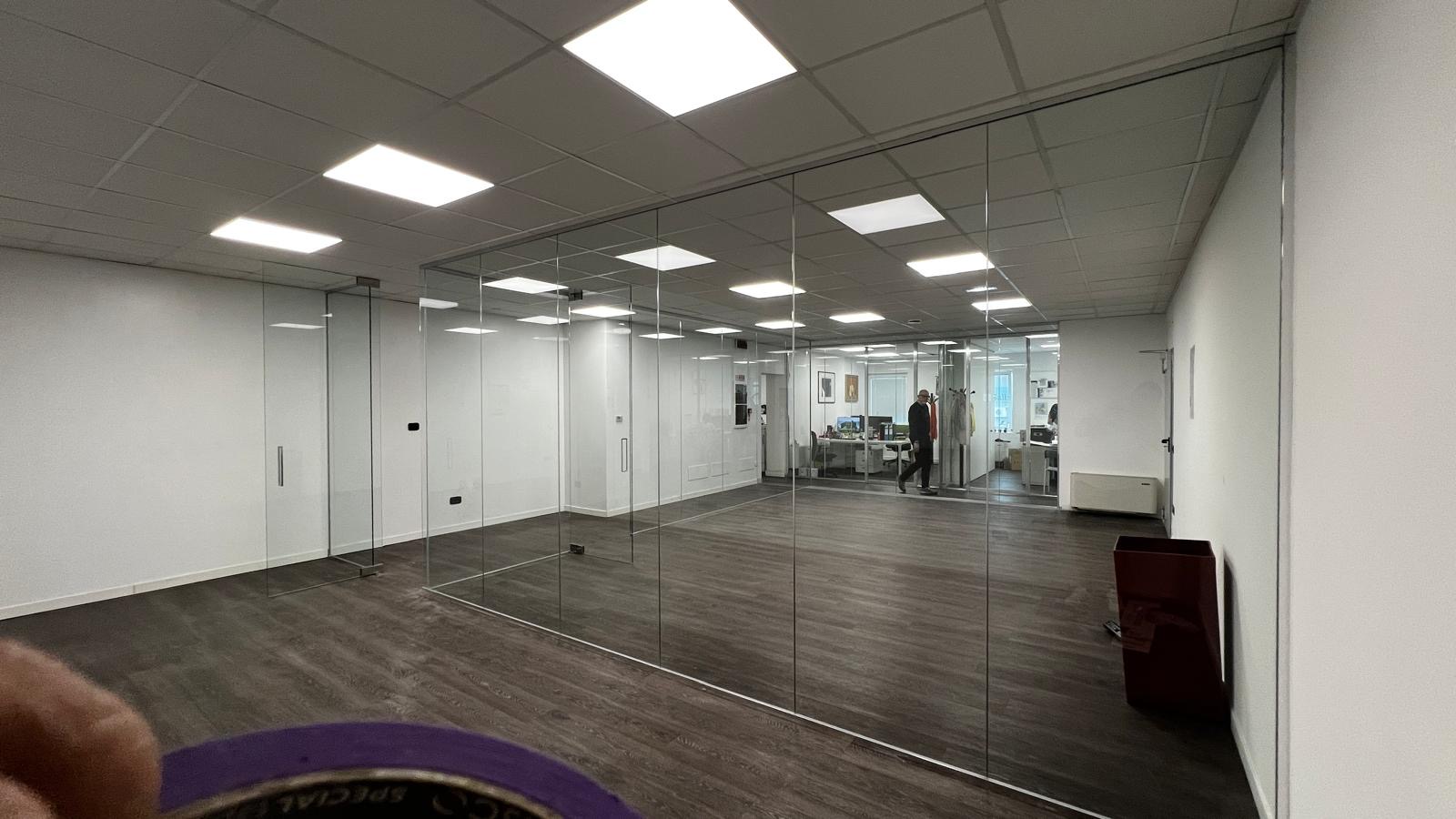 Le pareti divisorie in vetro consentono un limitato transito di cavi e assicurano una prestazione nell'abbattimento acustico in base alle caratteristiche del vetro scelto.