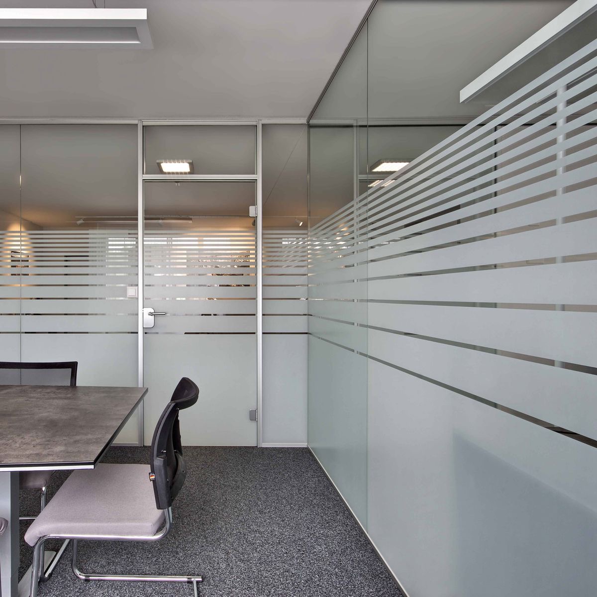 Molto spesso, sia a  livello estetico che per motivi di privacy, si consiglia la realizzazione di fasce/ decori sabbiati o  l’applicazione di pellicole effetto acidato  su tutto il vetro o su parte di esso.